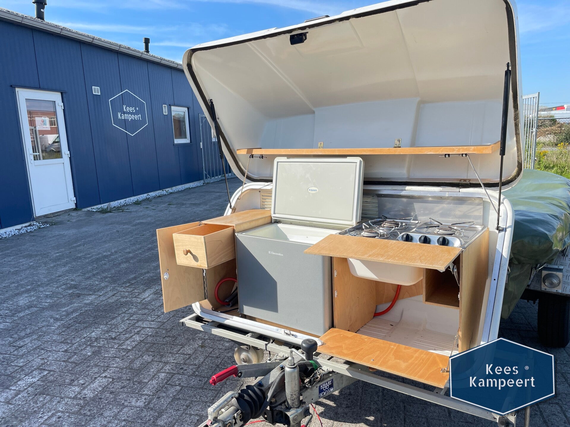 Deze Holtkamper WhiteBox disselkeuken is de perfecte aanvulling voor je Holtkamper Nano, Cocoon of Astro vouwwagen! De keuken is voorzien van een koelkast, een 3-pits gascomfoor, veel bergruimte, een kruidenrekje, besteklade en een plek voor de gasfles. De deksel van de keuken is met een sleutel afsluitbaar. Dankzij de gepatenteerde wielconstructie rijd je de keuken zo van de dissel af.