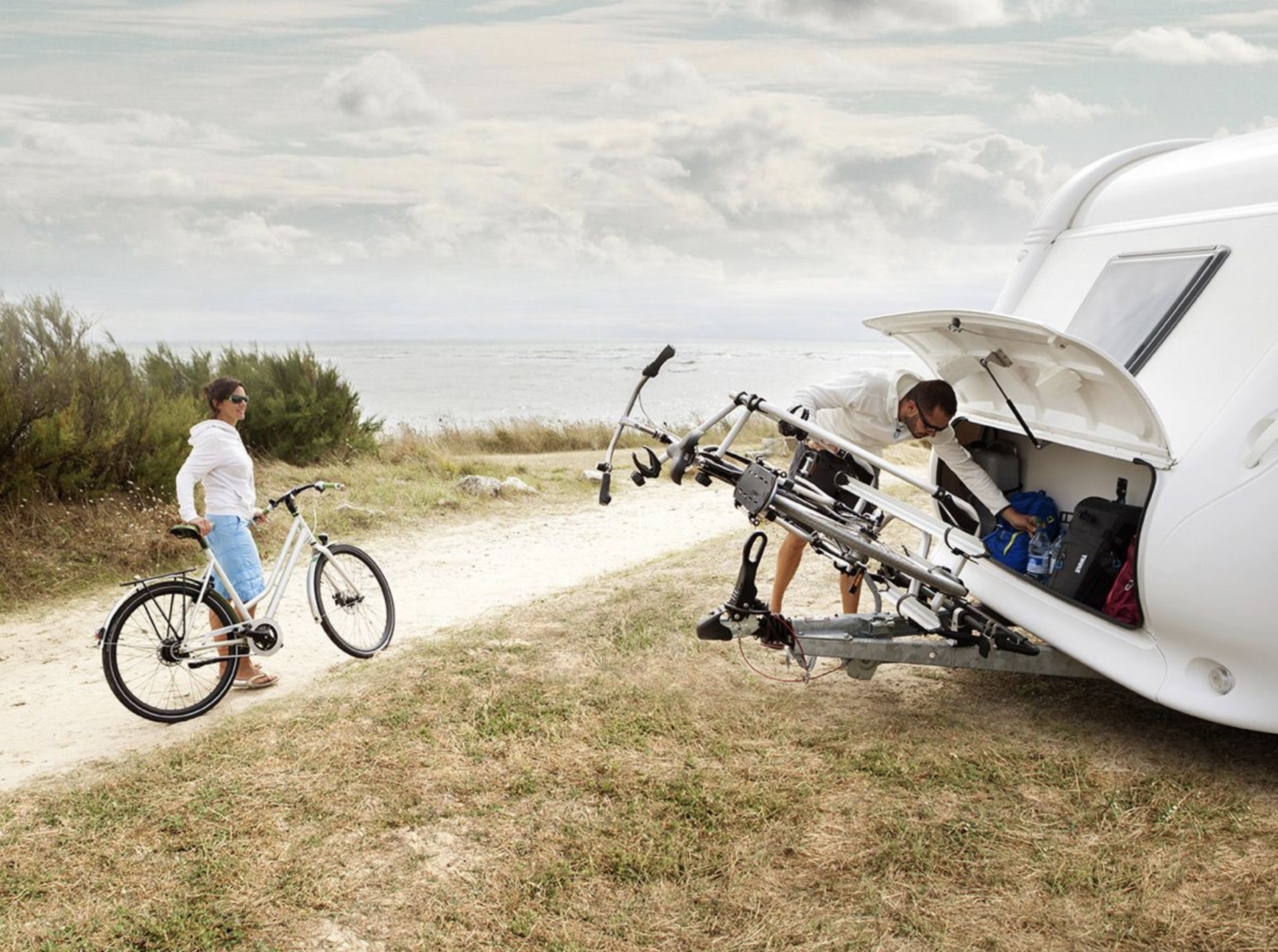 Met deze Thule Disselfietsendrager kun je op de dissel 2 fietsen meenemen en als je kiest voor de extra fietsgoot passen er zelfs 3 fietsen op! De drager heeft een kantelsysteem, waardoor je hem helemaal weg kunt klappen voordat je de Numero Dertien uitvouwt.
