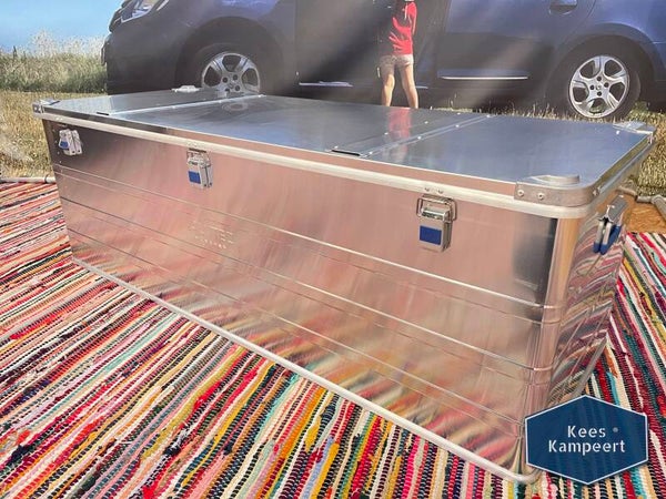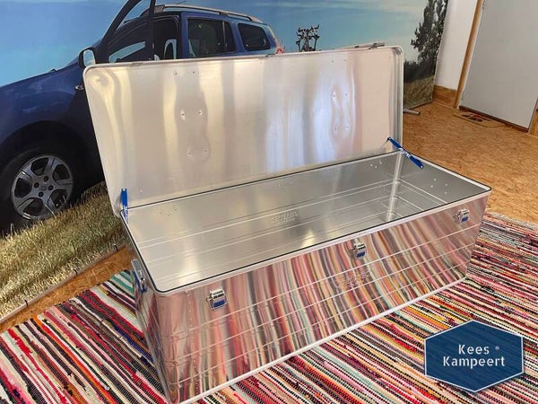 Deze mooie aluminium kist van Alutec gebruikten we in de hal als showmodel, maar hij is nu beschikbaar! Kleine gebruikssporen zijn uiteraard mogelijk maar hij is nooit buiten geweest.