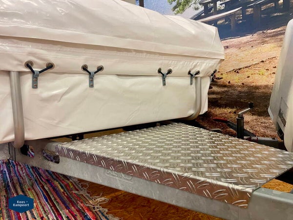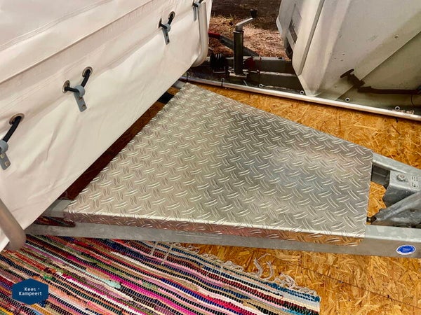 Maak de dissel van de Kees Kampeert β13 helemaal af met deze Disselplaat van aluminium! Hij past mooi bij de wagen en je kunt er tijdens een stop prima op zitten of staan π.