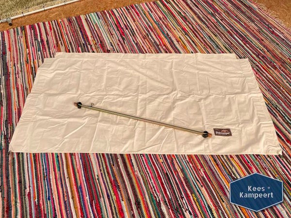 Holtkamper Verandascherm voor de Cocoon S, M, XL inclusief stang om hem te plaatsen. Dit verandascherm is in de breedte verstelbaar en past daarom bij de Sunrise luifel zowel in de 'lange' als in de 'korte' stand.