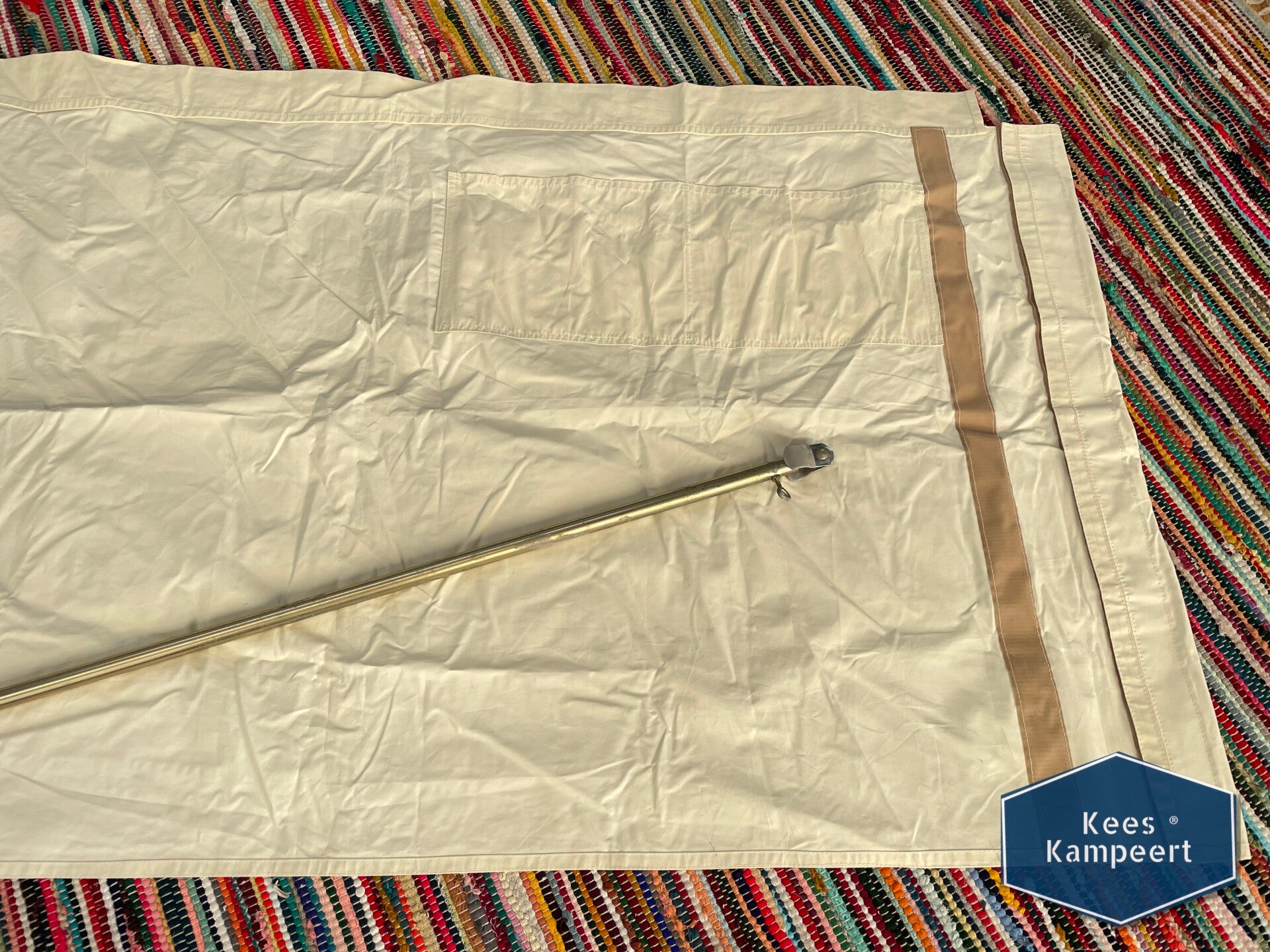 Holtkamper Verandascherm voor de Cocoon S, M of XL inclusief stang om hem te plaatsen. Dit verandascherm is in de breedte verstelbaar en past daarom bij de Sunrise luifel zowel in de 'lange' als in de 'korte' stand.
